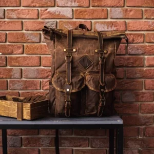 Comfort, style and quality backpack. Top grain leather trims with waxed canvas and ample storage space. This is a bag that can serve you for every day office use and still be a great accessory for travels. Its waxed finish means its all weather use