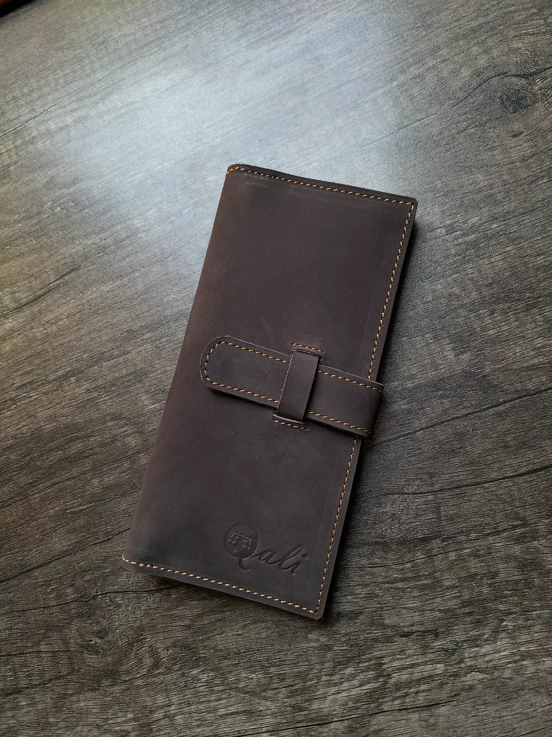 The distinctive “Qali” embossed logo adds a touch of brand sophistication without overwhelming the wallet’s clean lines. Quality hardware and reinforced stress points ensure long-lasting durability that withstands daily use.