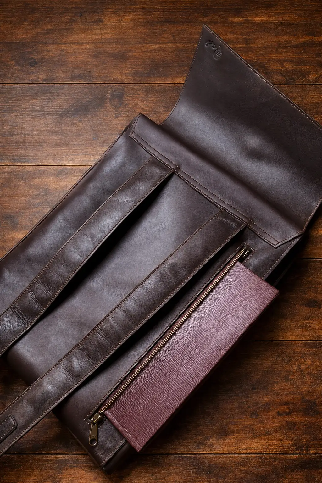 On one side, a zippered internal pocket stores valuables safely.