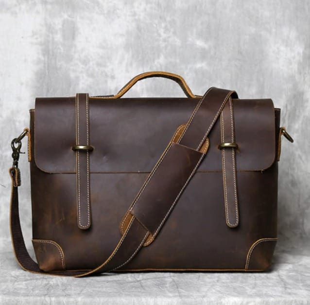 The removable and adjustable leather shoulder strap means it can act as a briefcase or as a crossbody messenger bag. The flap overturns on a zippered compartment that has a main compartment, a laptop partition, and small partings for keeping all other essential gadgets. You will love the finish and the amount of space this bag provides you with! What’s more, the bag’s leather darkens over time, which develops a beautiful rich patina as it ages. The Duma Leather laptop bag carries laptops of up to 14″ and can accommodate office documents easily without caving in.