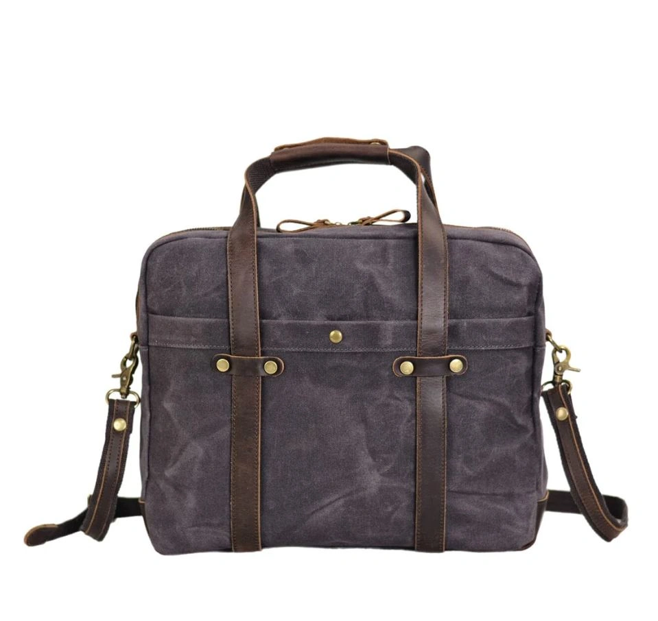 Constructed from premium 12 oz waxed canvas and crazy horse leather, this Jackson waxed briefcase is not only elegant but also built to last. The waxed canvas exterior is naturally water-resistant, ensuring your belongings stay dry no matter the weather. Whether you’re caught in a drizzle or navigating crowded commutes, this briefcase is built to withstand the elements, while maintaining its handsome, rugged aesthetic.