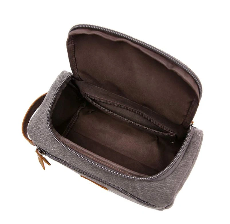Crafted with an artisanal touch, this bag is a symphony of compartments, a haven for your essentials. As you unzip its embrace, a world of organization unfurls before you. Segregated pockets stand ready to cradle your lotions, potions, and grooming treasures, ensuring no chaos remains in your daily routine. The robust and resilient canvas also tells a story of durability – a trusty companion on your journeys near and far. Yet, it not only demonstrates a tale of strength but it also shows off a narrative of style. The colors are like a masterful painting, with each shade carefully chosen to evoke a sense of wonder and wanderlust.The available colors include grey, blue, dark grey, and army green.