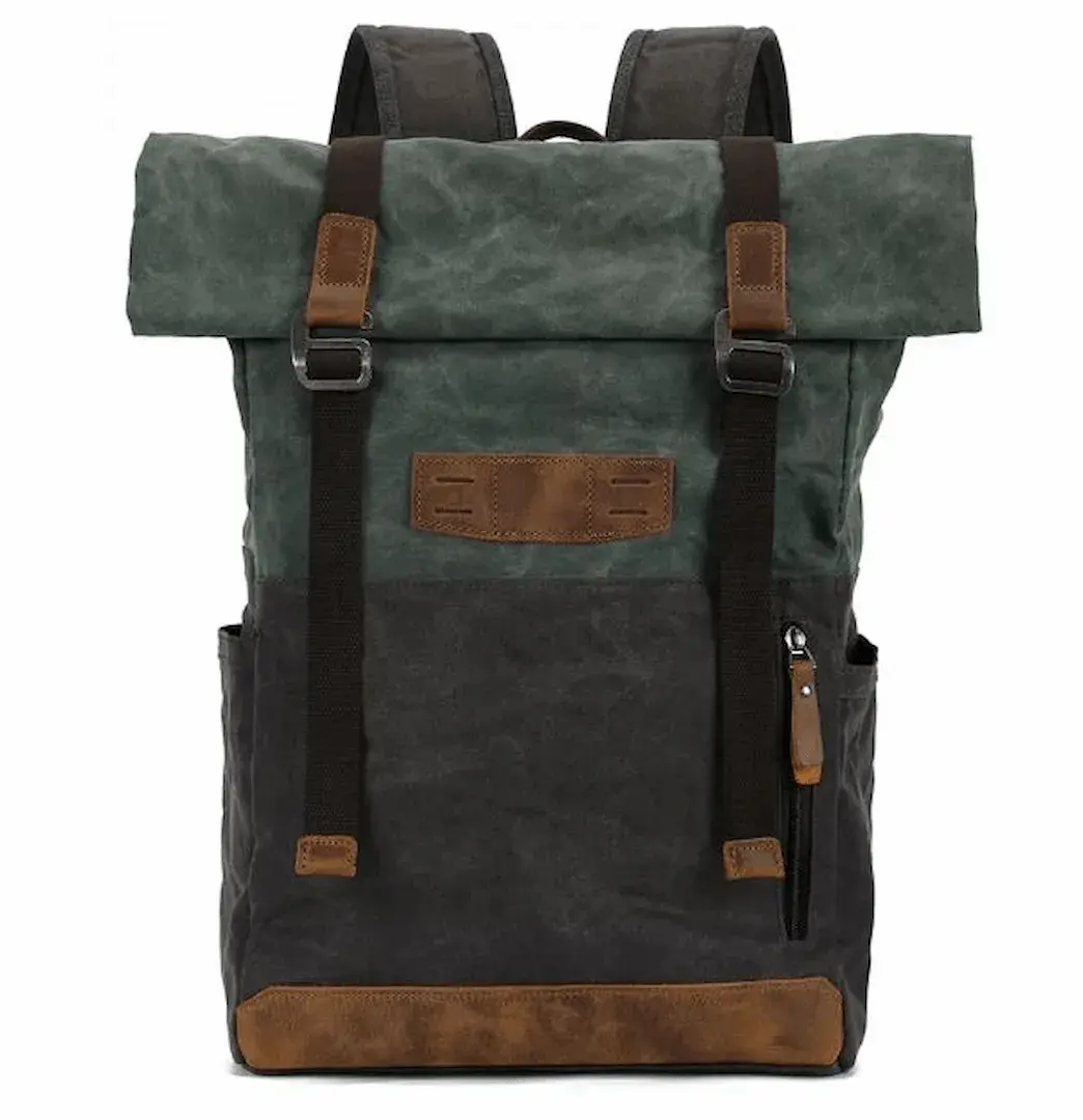 Savanna Backpack is a versatile and stylish companion for work, travel, and everyday use. Crafted from durable waxed canvas, this bag boasts a water-resistant finish that protects your belongings from unexpected weather. Its classic roll-top opening, secured with a hook and loop closure, ensures both easy access and expandable storage space, adapting seamlessly to your needs. It also ensures that the Content remain protected while adding a touch of vintage charm.